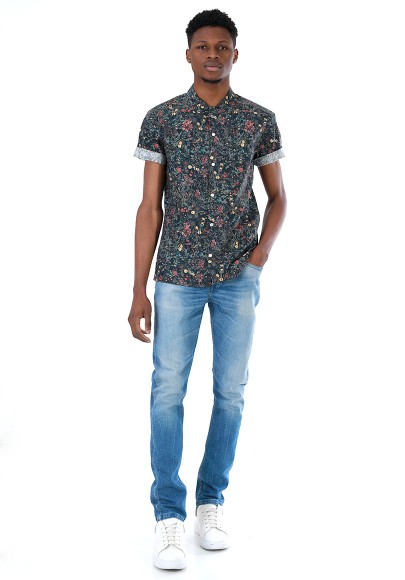 This tropical print shirt is perfect for casual summer looks. It is made of a soft, lightweight fabric and features a classic fit with lower armholes and wider sleeves.